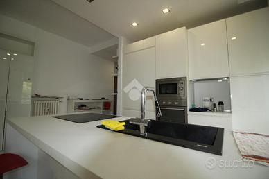 Zona Santa Lucia: in zona centrale e ben servita, luminoso piano secondo servito da ascensore in condominio ben tenuto. L'appartamento competamente ristrutturato a nuovo, si compone di ingresso con armadiatura, soggiorno con cuina a viat ed uscita diretta al comodo terrazzino, due camere da letto e bagno finestrato ocn vasca/doccia. Internamente è stato ristrutturato di recente con finiture di pregio, parquet in tutti gli ambienti, infissi in pvc taglio termico e tapparelle motorizzate. Completamente e finemente arredato con mobili nuovi , cucina con isola ed elettromestici performanti. Riscaldamento semiautonomo per la presenza di termovalvole e di contacalorie. Annessa cantina e posto auto condominiale interno. Libero da Giugno.