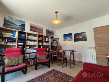 L'appartamento si apre sull' ampio soggiorno dal quale si accede alla cucina, ad una loggia sul fronte e ad un giardino pavimentato, comodo per una cena all'aperto.