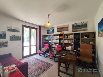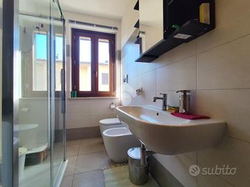 La zona notte si compone di due camere matrimoniali confortevoli e spaziose, una delle quali accede ad una piccola loggia coperta e ad un ampio giardino sul retro dal quale, attraverso una scala interna, si può scendere direttamente al garage pertinenziale sito al piano primo sottostrada.