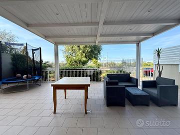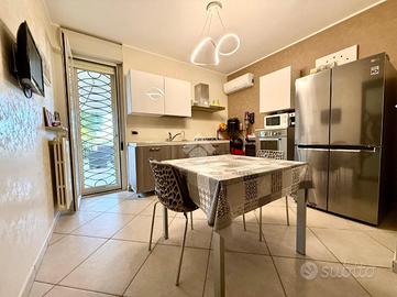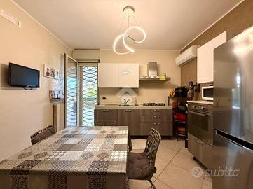 Gruppo Tecnocasa Bitonto Matteotti propone in vendita esclusiva un appartamento di tre vani di 100 mq situato a piano rialzato in un complesso residenziale in zona Via Ammiraglio Vacca. La disposizione interna prevede una zona giorno ben distribuita, caratterizzata da una naturale continuità con l'ampio terrazzo a livello di oltre 50 mq, pertinenza che incrementa il valore dell'unità. La zona notte è composta da bagno, camera matrimoniale e cameretta spaziosa. La proprietà è ulteriormente valorizzata dalla presenza di un box auto di pertinenza, garantendo una risposta concreta alla necessità di parcheggio in un'area ad alta densità residenziale. L'immobile rappresenta un'opzione di acquisto solida per chi ricerca un investimento immobiliare caratterizzato da finiture di qualità e collocazione strategica