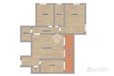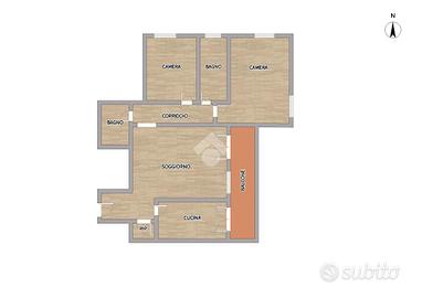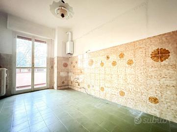 L'ingresso apre sulla zona giorno, composta da un luminoso soggiorno e da una cucina abitabile, entrambi con accesso diretto al balcone, oltre a un pratico ripostiglio.