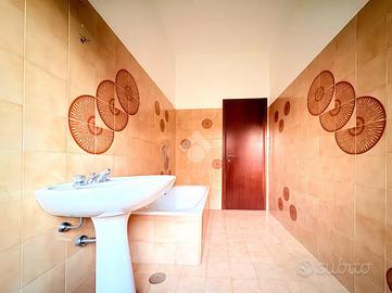 La zona notte è ben distribuita e comprende una camera matrimoniale, una cameretta e due bagni, di cui uno con vasca e l'altro con doccia.