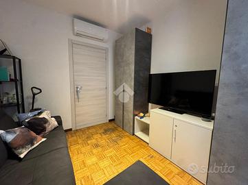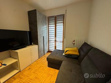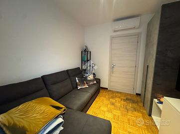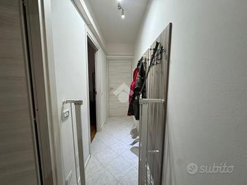 Un comodo corridoio conduce alla zona notte, dove si trova una camera singola con affaccio sul terrazzo comunicante con la cucina, ideale come stanza per ospiti, studio o cameretta.
