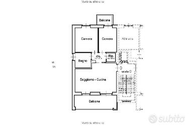 La zona notte comprende due camere da letto, entrambe accoglienti e ben illuminate, un bagno moderno e uno spazioso ripostiglio che funge anche da lavanderia. Un balcone aggiunge ulteriore spazio esterno.