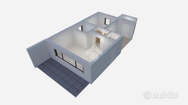 L'immobile, di 90 mq, offre spazi ben distribuiti e funzionali. Entrando, si accede a un luminoso soggiorno living con cucina che si apre su un grande terrazzo, ideale per momenti di relax all'aperto.