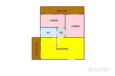 L'immobile è composto da cucina soggiorno adiacente ad un ampio balcone con lavanderia esterna, due camere da letto e bagno.