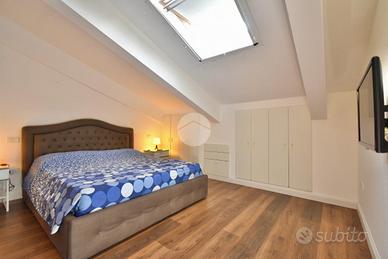Da comoda scala interna in legno si accede al piano mansardato, dove si sviluppa la zona notte composta da una camera matrimoniale, una camera doppia e un secondo bagno, finestrato e dotato di box doccia. Gli ambienti del piano superiore sono illuminati da ampi lucernari e presentano altezze confortevoli e spazi ben sfruttabili.