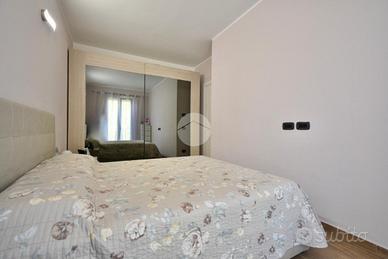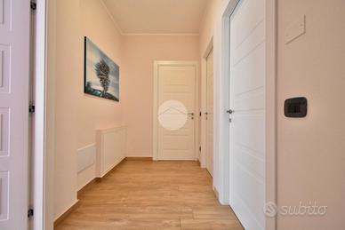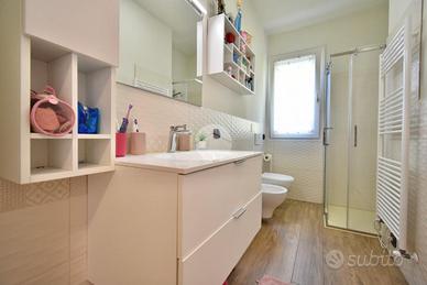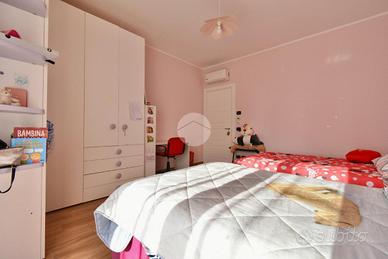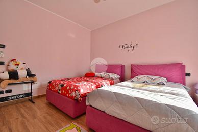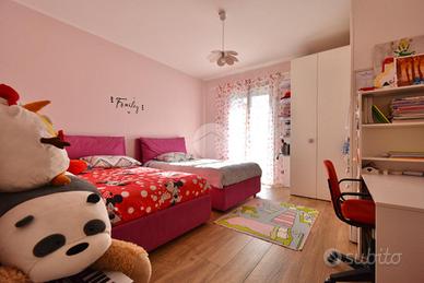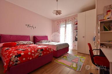 La zona notte, ben disimpegnata, ospita due spaziose camere matrimoniali, di cui una di 14 mq ed una di 18 mq e due bagni finestrati, entrambi completi di box doccia e finiture recenti.