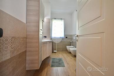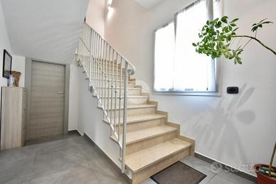 L'immobile è tenuto in ottime condizioni: riscaldamento a pavimento, pavimentazione in parquet, infissi in pvc doppio vetro con isolamento termoacustico e antisfondamento, zanzariere, aria condizionata inverter caldo e freddo, termocappotto, pannelli solari e batterie di accumulo.