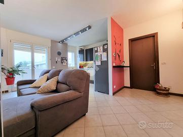 L'immobile è composto da luminosa zona giorno con cucina in open space dotata di affaccio al comodo balcone con tenda automatizzata. Proseguendo accediamo alla zona notte composta da due camere da letto, di cui una singola ed una matrimoniale, disimpegno ed infine bagno con box doccia.