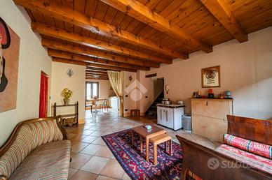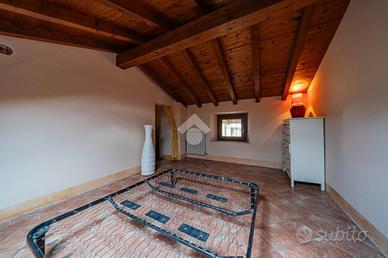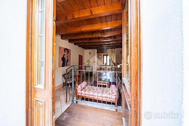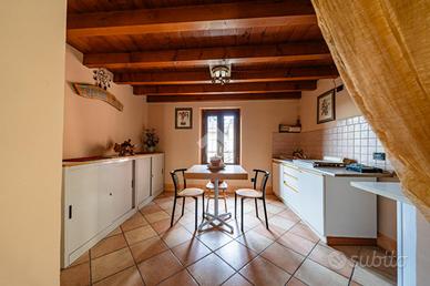 In porzione indipendente di sole due unità, proponiamo in vendita particolare trilocale su più livelli. Ingresso, soggiorno, cucina separata abitabile e bagno. Al primo piano troviamo la camera singola con balcone e camera matrimoniale con cabina armadio. Travi a vista. Riscaldamento autonomo.
