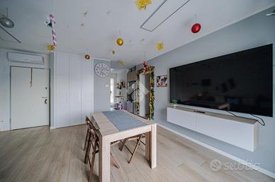 Dall'ingresso, si accede all'ampia e luminosa zona giorno, che conduce al giardino privato.