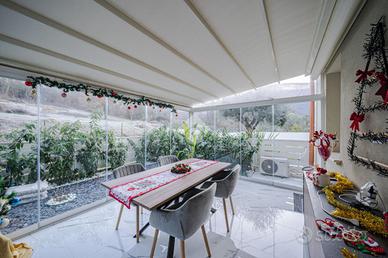 Sempre dalla zona giorno, si accede alla cucina separata che sfocia su una splendida veranda vetrata.