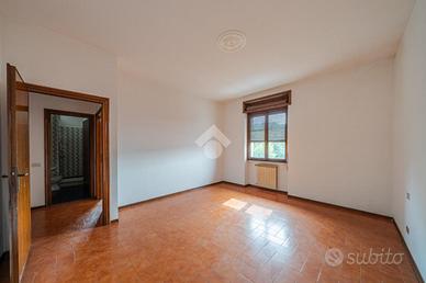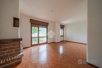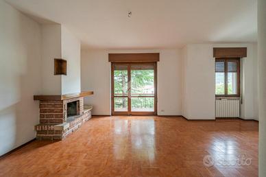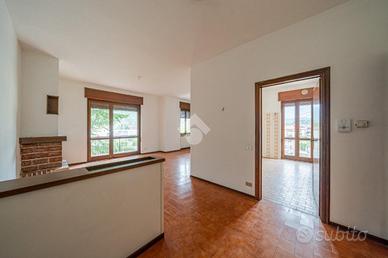 Dal piccolo ingresso, si accede all'ampio e luminoso soggiorno, comprensivo di camino e sfogo su un balcone vivibile. Sempre dal soggiorno si accede alla cucina separata abitabile, anch'essa con sfogo su balcone.