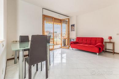Varcando la soglia, l'atmosfera è subito accogliente: gli spazi sono armoniosi, la luce naturale accompagna ogni ambiente e il soggiorno con angolo cottura diventa il cuore pulsante della casa, perfetto per momenti di relax o convivialità. Da qui si accede al terrazzo abitabile, ampio e riservato, un vero prolungamento del living, ideale per colazioni al sole, cene estive o semplicemente per godersi il tempo che scorre lentamente. Le tende da sole rendono questo spazio vivibile in ogni momento della giornata.