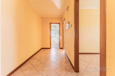 L'ingresso porta a un comodo disimpegno che conduce alla zona giorno composta da soggiorno con angolo cottura e accesso diretto al balcone di pertinenza, uno spazio ben proporzionato e facilmente organizzabile. Un secondo disimpegno separa in modo funzionale la zona notte, dove troviamo due camere da letto, di cui una con ulteriore balcone, e un bagno finestrato con vasca. La distribuzione interna è caratterizzata da ambienti regolari e finiture coerenti con l'epoca di costruzione, che consentono un utilizzo immediato o eventuali interventi di personalizzazione.