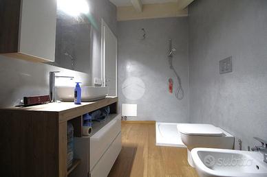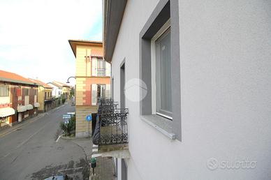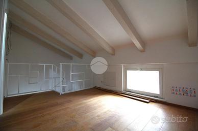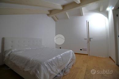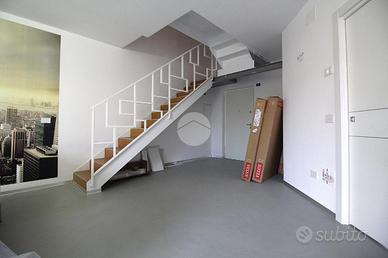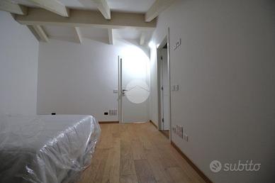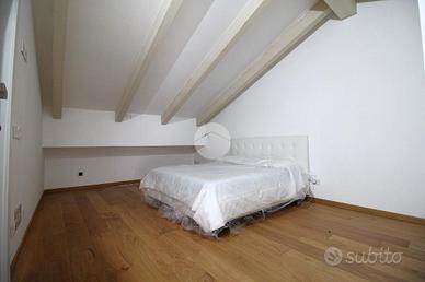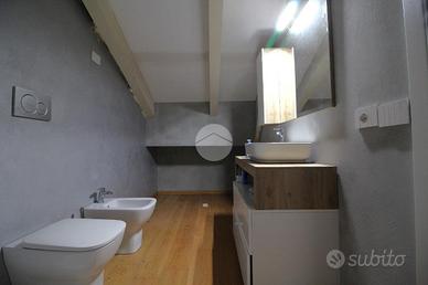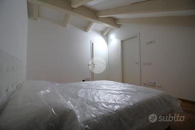In zona centrale, comoda a tutti i negozi e servizi, alloggio in contesto di nuova costruzione con finiture moderne e ricercate. La zona giorno si sviluppa per l'intero primo piano con un ampio soggiorno di circa 35 mq. dotato della comoda parete cottura lineare e illuminato da una finestra e dalla portafinestra che conduce al balcone. Il bagno è caratterizzato dal rivestimento in gres porcellanato effetto marmo, ed è rifinito con sanitari moderni filo muro e ampia doccia; Nell'antibagno è presente l'impianto di carico per la lavatrice. La scala interna, realizzata in ferro e rivestita in legno, conduce al piano mansardato, in cui l'intera zona notte è caratterizzata dal soffitto in legno a vista di colore bianco. Il primo ambiente si presta ad essere sfruttato con un ampio studio o in alternativa come cameretta. La camera matrimoniale è di metratura generosa e consente di essere facilmente arredata a proprio piacimento. Il bagno padronale è anch'esso dotato di sanitari moderni e doccia. I lucernari del piano saranno installati in base al posizionamento voluto dall'acquirente. Completa l'appartamento una comoda cantina al piano terreno. L'appartamento è dotato di impianto elettrico semidomotico Bticino serie now, che consente di implementare il controllo da remoto di luci, prese elettriche. Anche il sistema di riscaldamento semiautonomo a pavimento è regolabile con un termostato touch screen. Gli infissi sono realizzati in legno e dotati di vetrocamere da 28 mm. di spessore, in grado di garantire un ottimale isolamento termico e acustico. E' prevista inoltre la predisposizione del sistema di condizionamento autonomo. L'edificio in cui è collocato l'appartamento è stato oggetto di una completa ristrutturazione ultimata nel 2022. Le lavorazioni hanno previsto il completo rifacimento delle murature e l'inseriremento del cappotto su tutto il perimetro, lavorazione che assicura prestazioni energetiche elevate. Sul tetto sono presenti inoltre i pannelli so