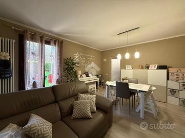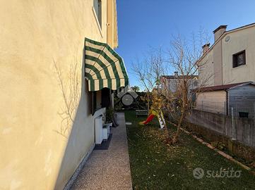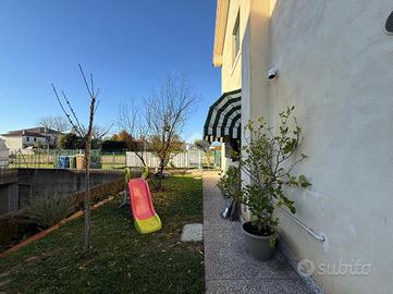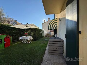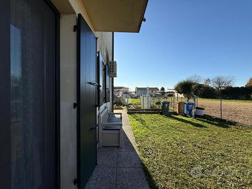 Breda di Piave, zona Pero, Studio Rinascita S.a.s. propone in esclusiva appartamento trilocale situato al piano terra con giardino privato in una palazzina del 1995 composta da sole 4 unità abitative. L'immobile è così composto: soggiorno e cucina separata, disimpegno, una camera da letto matrimoniale, una camera da letto singola e un bagno finestrato con la doccia. L'immobile è stato oggetto di una ristrutturazione nel 2019 per quanto riguarda il bagno, gli infissi interni e la pavimentazione. Nello stesso anno, inoltre, è stata sostituita la cadaia. La proprietà dispone di un ampio giardino di 172 mq che si estende su tre lati ( est-sud-ovest) e a cui si può accedere sia dal soggiorno che dalla camera matrimoniale. A completare la proprietà un garage singolo di 29 mq al piano interrato e un posto auto esterno riservato.