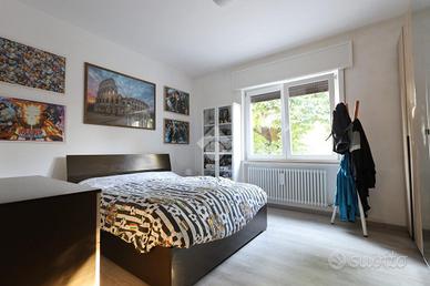 L'abitazione si apre su un ingresso con corridoio, che conduce a una cucina separata dal soggiorno, due camere da letto di generose dimensioni e un bagno finestrato. La zona giorno si affaccia su un terrazzo, con accesso diretto al giardino condominiale: uno spazio verde curato e fruibile, perfetto per pranzi all'aperto o momenti di relax.