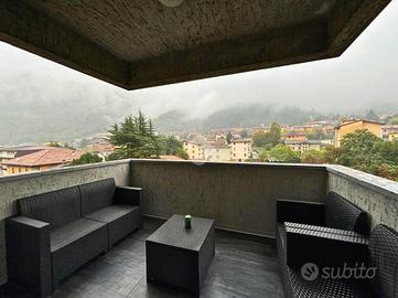 A Breno, in posizione centrale e comoda a tutti i servizi, proponiamo un ampio ed elegante appartamento al quarto piano con ascensore. All'ingresso, lo spazioso disimpegno conduce alla cucina: attrezzata e completa di ripostiglio e balcone, uno spazio ben pensato e luminoso. Il soggiorno, separato e organizzato per ospitare sia la zona relax sia l'area pranzo, si apre su un terrazzo vivibile e coperto, perfetto per momenti di convivialità o di relax all'aperto. Il corriodio porta anche a un comodo ripostiglio e al servizio finestrato, dotato di vasca e grande box doccia. Dal medesimo disimpegno si accede anche a due camere da letto, entrambe di generose dimensioni e una delle quali con affaccio su balcone. L'appartamento, arredato con stile moderno e raffinato, valorizza ogni ambiente con attenzione ai dettagli, creando un'atmosfera funzionale e accogliente. Arrichiscono il corredo: un tavolo da biliardo, convertibile in classico tavolo da pranzo, e un proiettore 4K con schermo da 150 pollici, pensati per offrire comfort e intrattenimento di alto livello per tutta la famiglia. Il riscaldamento è centralizzato e i relativi consumi, insieme all'acqua, vengono conteggiati in base all'effettivo utilizzo, garantendo una gestione chiara e trasparente delle spese condominiali. Completano la proprietà una cantina e un box auto inclusi nel prezzo.