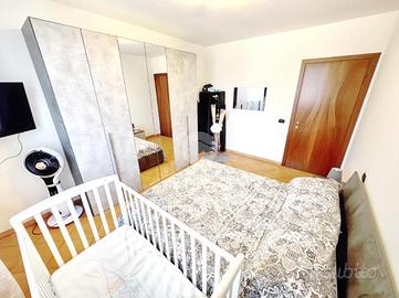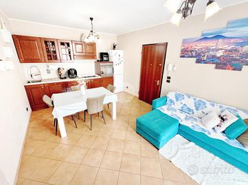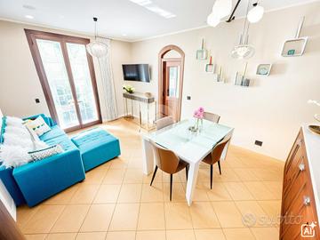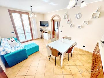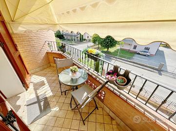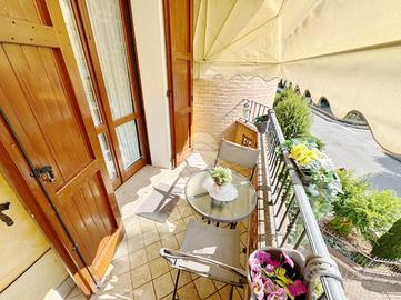 L'appartamento include una zona giorno luminosa con accesso diretto a un balcone, due camere, bagno finestrato e ripostiglio.