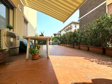 ZONA CROCIFISSA DI ROSA, BRESCIA - VIA CARLO PISACANE proponiamo ampio trilocale biservizi con studio di 145 MQ commerciali. Situato al piano rialzato di un contesto condominiale rivisto rcentemente grazie al bonus facciata del 90%. L'immobile, caratterizzato da una tripla esposizione, si apre su una luminosa e spaziosa zona giorno, con cucina separata abitabile. Il disimpegno conduce alla zona notte composta da: una camera matrimoniale, uno studio, una camera singola comoda, con accesso diretto alla terrazza, e ai doppi servizi di cui uno completamente rivisto nel 2025. La terrazza si affaccia su un curato giardino privato, accessibile anche direttamente tramite cancello indipendente dall'ingresso condominiale: soluzione ideale per famiglie, animali domestici o amanti del verde. A completare la soluzione è presente un box privato. L'appartamento è stato oggetto di totale ristrutturazione nel 1997. Nel 2019 sono stati sostituiti gli infissi, ora dotati di tapparelle automatizzate e blindate. Il riscaldamento è centralizzato con sistema di teleriscaldamento, incluso nelle spese condominiali annuali pari a 2600€. Un'ottima soluzione per chi cerca ampi spazi interni, comfort, e un raro sfogo esterno a pochi passi dal centro della città.