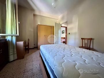 La zona notte, raggiungibile tramite un disimpegno, si compone di due camere matrimoniali di generosa metratura, entrambe ben illuminate, e di un bagno finestrato con doccia, spazioso e luminoso.