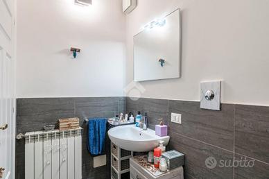 L'immobile è dotato di un accogliente soggiorno con zona lavanderia, cucina separata abitabile con sala da pranzo annessa, due camere da letto di cui una matrimoniale di 20 metri quadri e doppi servizi (uno per piano).