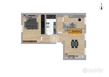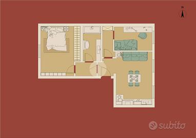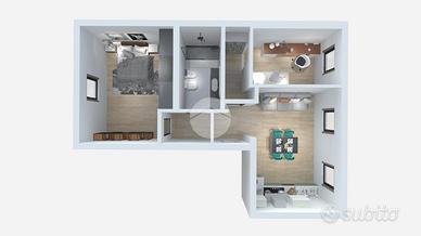 Questa soluzione abitativa è perfetta per chi cerca un ambiente accogliente e funzionale, con uno spazio che sa rispondere a diverse esigenze abitative.