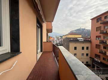 A pochi passi dal centro storico di Brescia proponiamo in vendita un trilocale di 110 mq commerciali, completamente ristrutturato nel 2019 con finiture di pregio situato al terzo piano di un contesto signorile dotato di ascensore e servizio di portineria. L'ingresso si apre su una luminosa zona giorno caratterizzata da un comodo sfogo esterno che offre una splendida vista panoramica sul Castello di Brescia, e una cucina separata da una splendida porta a scorrimento in vetro. Un pratico disimpegno conduce alla zona notte composta da un bagno finestrato dotato di box doccia e due camere matrimoniali, una delle quali arricchita da un ulteriore bagno padronale. Troviamo infine un locale adibito a lavanderia. L'appartamento è dotato di impianto di climatizzazione, sono presenti 3 split posizionati nella zona living e nelle due camere sopracitate. Le tapparelle sono tutte elettriche, ed è possibile controllarne il funzionamento contemporaneamente tramite un pratico tasto posizionato all'ingresso. Completa la soluzione una cantina di pertinenza. Il riscaldamento è centralizzato con teleriscaldamento e le spese condominiali ordinarie ammontano a circa €2.000 annui. Una soluzione ideale per chi desidera spazio, comfort e una posizione privilegiata a pochi passi dal centro della città.