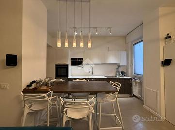 ZONA VIALE PIAVE - VIA BENEDETTO MARCELLO, BRESCIA In contesto signorile degli anni '70 proponiamo in vendita ampio trilocale completamente ristrutturato nel 2021, posto al quarto piano. L'ingresso conduce alla luminosa zona giorno con cucina a vista realizzata in Corian e accesso a un comodo sfogo esterno. La zona notte è composta da una spaziosa camera matrimoniale e da una seconda camera di generose dimensioni, attualmente adibita a studio, dotata di bagno privato con funzione lavanderia. Completa la soluzione un bagno finestrato con box doccia walk-in. L'intero appartamento è caratterizzato da pavimentazione in resina, impianto di climatizzazione trial e radiatori con possibilità di gestione da remoto. Il riscaldamento è centralizzato con teleriscaldamento. L'impianto elettrico e quello idraulico sono stati completamente rifatti circa cinque anni fa. L'immobile è inoltre dotato di impianto di allarme, videocitofono, impianto audio, porta blindata, infissi in doppio vetro con apertura vasistas e pannelli fotovoltaici. All'interno del condominio sono presenti una cantina di pertinenza e un posto auto.