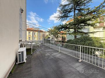 BRESCIA - ZONA CROCIFISSA - VIA ACHILLE PAPA Proponiamo in vendita quadrilocale di 150 mq commerciali, posto al primo piano in uno dei contesti signorili più ricercati della zona, servito da ascensore sostituito nel 2025. L'appartamento si apre su un ingresso comodo che conduce alla zona giorno, ben distribuita e luminosa grazie all'esposizione a est, con accesso diretto a una balconata di 20 mq con vista Castello. La cucina, separata e di circa 10 mq, offre la possibilità, di abbattere il tramezzo che la divide dal soggiorno, creando un'ampia e moderna zona living open space. Un corridoio ben organizzato conduce alla zona notte, dove troviamo: * due camere matrimoniali di generose dimensioni; * un terzo locale attualmente adibito a studio, con accesso diretto al terrazzo di 30 mq ad uso esclusivo, ideale come spazio relax o area conviviale all'aperto.Completano la proprietà due bagni, uno dotato di vasca e uno dotato di box doccia; uno dei due dispone inoltre dell'accesso a un ulteriore ripostiglio esterno chiuso, molto pratico come spazio accessorio. L'immobile gode di tripla esposizione (est, ovest e nord), caratteristica che garantisce buona luminosità nella gran parte della giornata. Completano la proprietà: * box auto di 27 mq; * cantina di pertinenza. Le spese condominiali ammontano a circa € 3.000 annui comprensive di riscaldamento centralizzato con teleriscaldamento. Soluzione ideale per chi è alla ricerca di ampi spazi, sfoghi esterni vivibili e personalizzazione totale in una posizione con vista di pregio. Si propone infine un'idea di ristrutturazione con progetto allegato