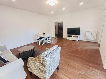 L'immobile è stato oggetto di una recente e completa ristrutturazione interna. La zona giorno si compone di un luminoso soggiorno con accesso a un ampio balcone e di una cucina separata servita da un secondo balcone di servizio. La zona notte comprende due camere da letto di ampie metrature e un bagno finestrato, rifinito con sanitari sospesi e box doccia. La proprietà è completata da un funzionale ripostiglio attrezzato con attacco lavatrice e da una cantina di pertinenza.