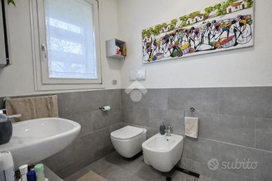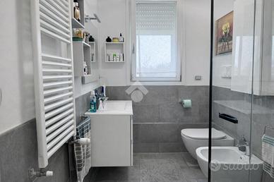 In una tranquilla zona residenziale, proponiamo in vendita trilocale di 92 mq, al primo piano di una palazzina recente immersa nel verde, è una casa che sa accogliere e far sentire subito al sicuro. Il contesto è curato e tranquillo, arricchito da un servizio di vigilanza notturna che garantisce serenità a tutti i condomini. Varcando la porta d'ingresso si viene accolti da una zona giorno luminosa e ariosa, baciata dal sole per l'intero arco della giornata grazie all'ottima esposizione. È uno spazio che invita a rallentare, a godersi la luce naturale che filtra dalle finestre e a condividere momenti preziosi. La cucina, separata e abitabile, è perfetta per chi ama cucinare senza rinunciare alla convivialità: anch'essa affaccia sul balcone, creando una piacevole continuità tra interno ed esterno. Proprio sul balcone è stata ricavata una comoda zona lavanderia, pratica e ben organizzata, dove trovano posto lavatrice e asciugatrice senza sottrarre spazio agli ambienti di casa. Attraverso il disimpegno si accede alla zona notte, pensata per garantire intimità e comfort. La camera singola, comoda e luminosa, ha accesso a un grazioso balconcino. Il bagno finestrato con box doccia è funzionale e curato. La camera matrimoniale è un ambiente accogliente e riservato, arricchito da una cabina armadio e da un bagno padronale. Il riscaldamento a pavimento regala un calore uniforme e avvolgente, mentre i pavimenti in gres porcellanato donano eleganza e praticità. Gli infissi in legno con doppio vetro, insieme alla presenza del cappotto termico, assicurano un elevato comfort termico e acustico, contribuendo anche a una migliore efficienza energetica dell'immobile. L'appartamento è inoltre dotato di impianto di allarme, anche perimetrale sul balcone della zona giorno, tapparelle elettriche e di due climatizzatori, uno nella zona living e uno nella camera matrimoniale, per garantire benessere in ogni stagione. Completa la proprietà un comodo box di 20 mq, situato proprio sotto l'.