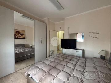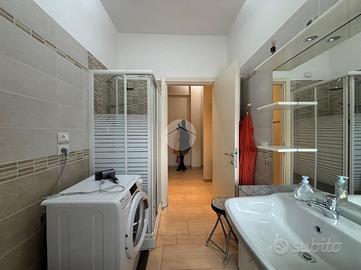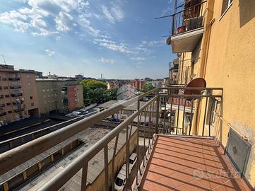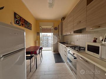 Trilocale posto al quinto piano, servito da ascensore, con ingresso nel soggiorno con balcone esposto a Ovest, cucina separata semi abitabile con porta scorrevole e con balcone esposto a Est. Dalla porta battente accediamo al corridoio dove troviamo la zona notte, composta da due camere da letto matrimoniali di cui una con balcone esposto a Ovest, antibagno attrezzato con mensole e armadio a muro, bagno finestrato con doccia e attacchi per lavatrice e asciugatrice in colonna. A completa l'appartamento un ripostiglio di ottime dimensioni, che potrebbe essere ristrutturato per diventare un secondo bagno. Al primo piano interrato troviamo la cantina ed il garage singolo. L'immobile è stato completamente ristrutturato nel 2016. Riscaldamento autonomo. L'immobile è locato con contratto 4+4 con scadenza al 31/10/2026. La palazzina è a pochi passi dalla Farmacia, da bar, ristoranti, supermercati, fornaio, dal Centro della Città, vicino alla stazione dei treni, alla fermata del Pullman, e a pochi minuti la fermata della Metropolitana. Ottima anche la vicinanza alle scuole dell'obbligo e alle strade che collegano alla Tangenziale e Autostrada.