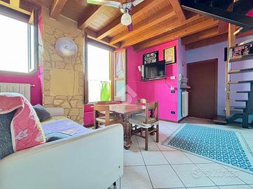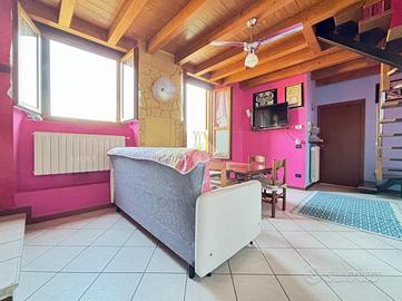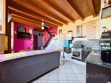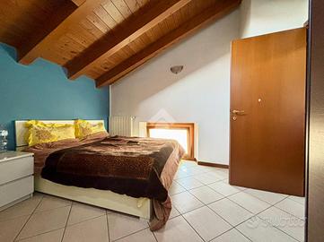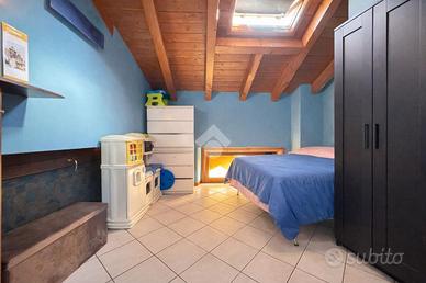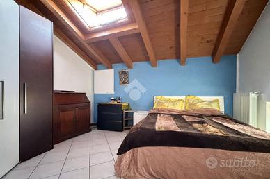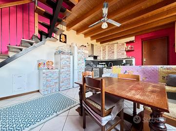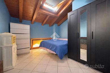 BRIGNANO GERA D'ADDA Centro paese: Di fronte al Palazzo Visconti (X Secolo) proponiamo, in contesto di corte ristrutturato nel 2004, appartamento di 90 mq termoautonomo disposto su due piani, dotato di cantina al piano terreno. L'immobile è composto da ingresso, soggiorno con angolo cottura e bagno al piano secondo e due ampie camere da letto mansardate e disimpegno al terzo ed ultimo piano. ULTERIORI INFORMAZIONI: Riscaldamento autonomo con caldaia a condensazione nuova del 2022 e spese condominiali annue di circa 700 euro, serramenti in legno con doppi vetri e persiane in alluminio, solaio e tetto in legno con travi a vista, zanzariere, porta blindata e predisposizione impianto di aria condizionata.