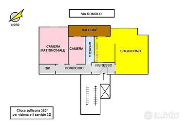 Nell'icona 360° troverete il servizio Matterport per prendere le misure e camminare in casa. Cercate i tondini colorati dove troverete contenuti e dettagli.