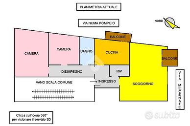 Nell'icona 360° troverete il servizio Matterport per prendere le misure e camminare in casa. Cercate i tondini colorati dove troverete contenuti e dettagli.