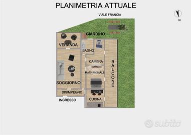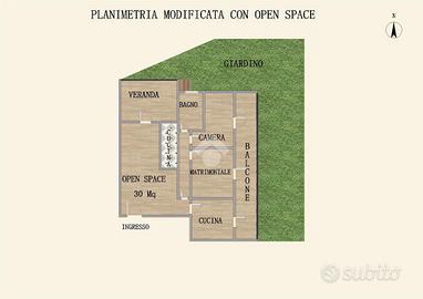 È un immobile che ha un gran valore di trasformazione, è di circa 96mq lordi oltre ai balconi e giardino.