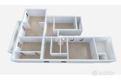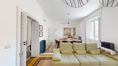 CENTRO - Via Giovanni XXIII - Abitare in pieno centro significa situarsi nelle immediate vicinanze dei vari servizi utili alle spese quotidiane necessarie. In pochi minuti è possibile raggiungere a piedi i principali Corsi e le principali Piazze della città per effettuare delle gradevoli passeggiate e trascorrere delle serate in tranquillità ed in compagnia nei vari locali presenti in centro. Si tratta di un appartamento in un mini condominio: una rampa di scale con accesso dal piano terra in Via Giovanni XXIII conduce al primo piano dove la porta d'ingresso dà l'accesso in un disimpegno luminoso ed a seguire al soggiorno. Il soggiorno doppio, dalle dimensioni di 45 mq, è un'ampia zona living nella quale trascorrere momenti di serenità dopo una lunga giornata lavorativa ed in compagnia della propria famiglia. La stanza in questione, oltre a disporre di ampie dimensioni, è anche molto luminosa grazie alle due finestre presenti, delle quali una porta finestra che conduce al balcone, con affaccio su Via Giovanni XXIII. La pavimentazione della zona living è d'epoca, dunque dona un tono elegante e raffinato all'intero ambiente. A seguire, per ordine, è presente una delle due camere da letto, dalle dimensioni di 21 mq e con accesso su di un ulteriore balcone. La seconda camera da letto, quella matrimoniale e dalle dimensioni di 25 mq, dispone di accesso al balcone, lo sesso del soggiorno. La pavimentazione delle camere da letto e del disimpegno è in parquet. Vari accessi ai balconi in un appartamento fanno sì che si abbia un continuo circolo di aria pulita. Gli infissi sono in legno con vetrocamera: significa disporre di un alto livello di isolamento termico, il quale consente di ottenere un clima interno piacevole, limitando anche il problema di tenere accesi per l'intera giornata gli impianti di riscaldamento. La cucina abitabile è dalle dimensioni di 27 mq e dispone di angolo cottura ed accesso ad una piccola veranda dalle dimensioni di 20 mq con