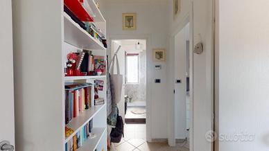 All'ingresso troviamo un accogliente openspace con balcone con zona lavanderia.