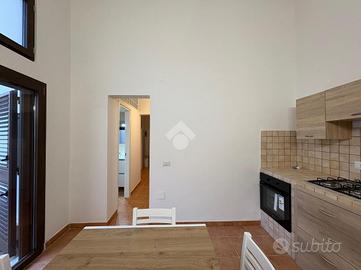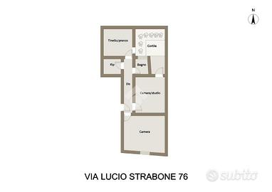 All'ingresso troviamo un disimpegno dal quale accediamo ad una zona giorno con angolo cottura, alla camera matrimoniale, alla cameretta/studio, al bagno munito di box doccia e ad un comodo ripostiglio.