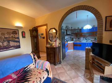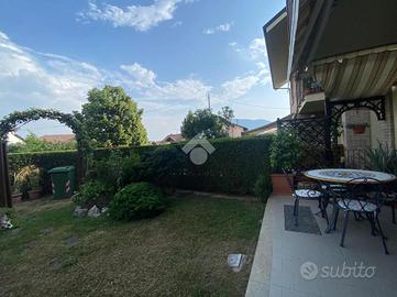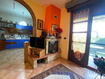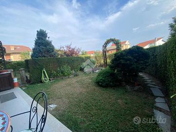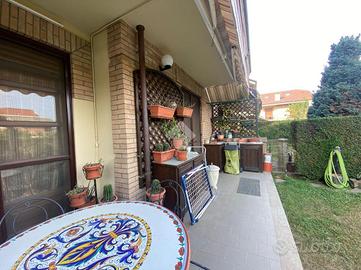 BRUINO - VIA ORBASSANO - l'immobile sorge in una recente e curata palazzina dotata di giardino condominiale, in posizione soleggiata e tranquilla a due passi dal centro e dai primi servizi. Collocato al piano terra, con apprezzabile affaccio ad angolo dotato di giardino privato e un balcone, gode di un'ottima esposizione solare. All'interno si compone di ingresso in soggiorno con camino a legna funzionante, un arco in muratura conduce nella cucina abitabile con uscita diretta sul terrazzo e sul giardino, prosegue con un comodo disimpegno di accesso alla zona notte dove troviamo uno studio, una camera matrimoniale di ampia metratura, bagno con doccia e balconcino privato. L'abitazione si presenta in ottimo stato, come l'intero contesto che in virtù della sua recente realizzazione (2002), non necessità di alcun intervento di ristrutturazione. L'impianto di riscaldamento è autonomo a metano, condizionatore. Zanzariere. Tende da sole elettriche. Antifurto. Box auto.