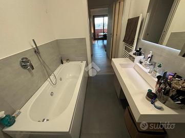 Il disimpegno separa dalla zona giorno, le due camere di cui una matrimoniale ed entrambe servite da due balconi, oltre al bagno padronale ed al 2° bagno che funge anche da lavanderia.