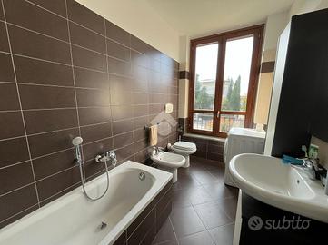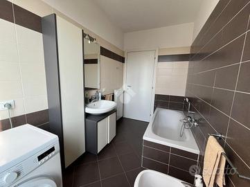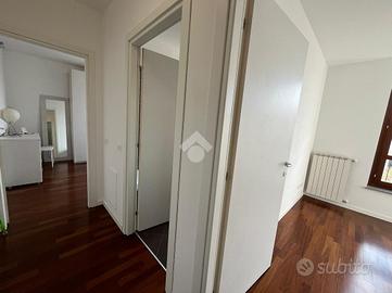 Lo stabile è di recente costruzione con ottimi materiali di rifinitura esterni che sposa perfettamente lo stile interno dell'abitazione, di fatti i materiali utilizzati all'interno sono anch'essi di ottima qualità. Pavimentazione in gres porcellanato 60x60 chiaro nella zona giorno, parquet in legno massello scuro nella zona notte, fatta eccezione per il bagno ove troviamo il grès porcellanato in contrasto scuro/chiaro creando colori neutri, perfetti per qualsiasi tipologia di mobilio.