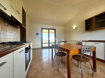 BUDONI - In Località Limpiddu, in contesto curato e riservato a pochi minuti dalle spiagge di Baia Sant'Anna e Porto Ainu, proponiamo in esclusiva appartamento al piano primo tipologia trivano. L'unità immobiliare vanta un comodo ingresso indipendente che ci conduce ad un ampio cortile di proprietà. Una spaziosa veranda con splendida vista sul mare ci accompagna all'ingresso dell'immobile, varcato il quale troviamo un ampio e luminoso soggiorno con angolo cottura. Un disimpegno ci porta alla zona notte, formata da una prima camera da letto matrimoniale con affaccio su veranda vista mare, dalla seconda camera letto doppia e dal bagno finestrato con doccia. L'immobile è dotato di posto auto di proprietà, è termocondizionato, e viene ceduto completo di arredi. Consigliamo la soluzione per l'ottimo stato manutentivo e per la tranquillità e riservatezza che offre la zona.