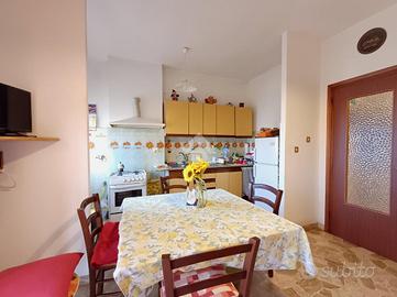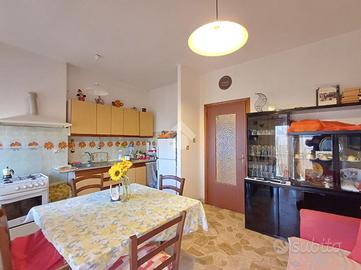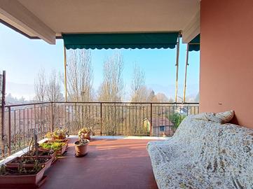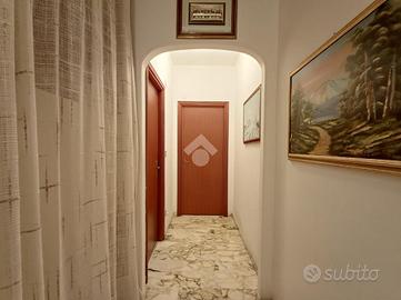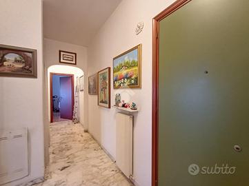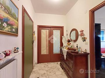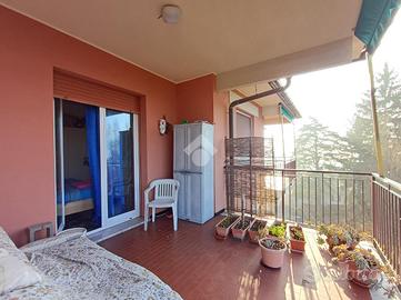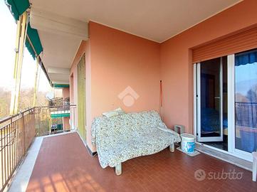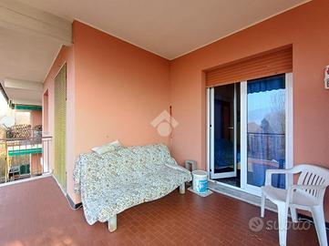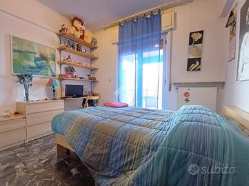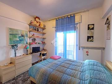 SARISSOLA - Piazza Marchese Siamo nella parte alta di Sarissola, nella zona nota come zona dei Trogoli e dei palazzi rossi. L'appartamento, con ottima esposizione e luminosità, è posto al terzo ed ultimo piano di una piccola palazzina, ordinata in tutte le sue parti comuni ed altresì dotata di ascensore ed ampia area verde attrezzata. All'ingresso dello stabile inoltre è presente un monta-scale elettrico per agevolare l'accesso alle persone disabili. Un ampio ingresso, eventualmente arredabile e comprensivo di locale ad uso 'cabina armadio' ci conduce, tramite piccolo corridoio successivo, ai vari ambienti della casa. La zona giorno è composta in un unica soluzione da angolo cottura aperto in stile 'open space' sul tinello, attualmente sfruttato come sala da pranzo e come soggiorno. Adiacente ad esso è presente, come zona notte una delle due camere da letto matrimoniali presenti. Sia dalla zona giorno sia da questa camere, si può accedere, tramite due porte-finestra, al grande terrazzo vivibile coperto. Dall'altro lato la zona notte si completa con un ulteriore camera da letto matrimoniale e dall'adiacente bagno dotato di finestra e vasca. Una delle camere, quella adiacente alla cucina, può eventualmente essere sfruttata come soggiorno a seconda delle esigenze. Il riscaldamento è semi-autonomo in quanto, pur essendo presente una caldaia unica per tutto il condominio, in casa è presente un crono-termostato col quale è possibile regolare temperature ed orari di accensione. Al piano superiore troviamo uno spazioso solaio. Completa la proprietà un box, posto nei fondi dello stabile, di circa 18 mq, eventualmente soppalcabile e provvisto di lavandino con acqua. Ampio spazio di manovra nel tunnel che dà accesso ai box. La parte condominiale inoltre prevede un posto auto scoperto assegnato ad ogni appartamento presente ed una splendida Area verde attrezzata con BBQ e giochi per bambini. L' area è prenotabile e ad uso esclusivo dei soli condomini.