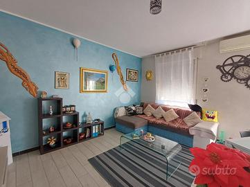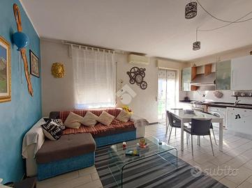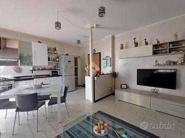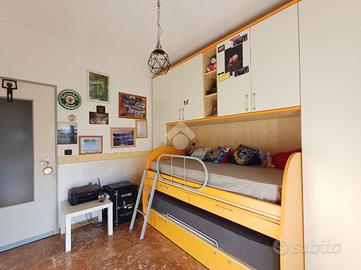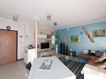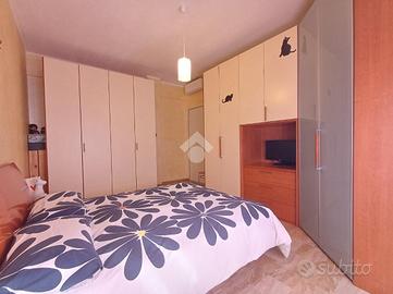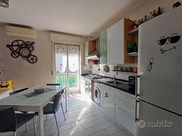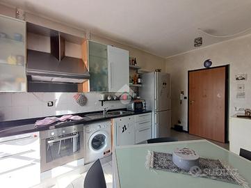 SARISSOLA - Via G. Macciò Siamo a pochi passi dalle scuole dell'infanzia e primarie, facilmente fruibili anche a piedi, così come tutti i servizi essenziali, negozi e mezzi di trasporto pubblico. L 'immobile è posto al quarto piano di una palazzina di cinque complessivi, dotato di ascensore e grande area parcheggio pubblica posta di fronte allo stabile. Un ampio ingresso dotato di portoncino blindato dà accesso diretto alla zona giorno composta in unica soluzione di tipo 'open space' da cucina con relativo tavolo da pranzo ed adiacente soggiorno. Gli ambienti sono separati solo da piccolo muretto basso. Dalla cucina è possibile accedere, tramite porta-finestra all'ampio balcone. Un piccolo corridoio conduce alla zona notte, composta da una grande camera matrimoniale e da una seconda camera doppia, anch'essa con accesso diretto al balcone. Adiacente alla seconda camera troviamo il bagno dotato di finestra, box doccia in muratura e spazio per la lavatrice. L'appartamento, con esposizione a Sud gode di ottima luminosità in tutte le ore del giorno e risulta in buonissimo stato di manutenzione. Le finestre sono in alluminio ed in doppio vetro, i pavimenti sono in parte in gres porcellanato ed in parte in graniglia alla genovese. Il riscaldamento è centralizzato e sono già presenti i contabilizzatori di calore su tutti i caloriferi ed inoltre nella zona giorno è posizionato un condizionatore a split. Spese di amministrazione contenute.