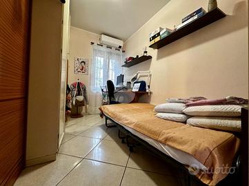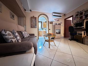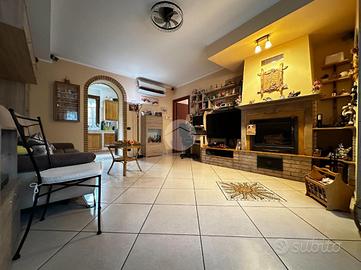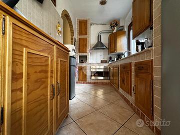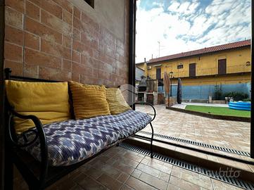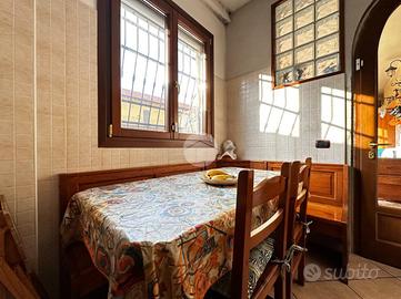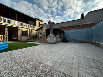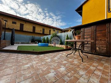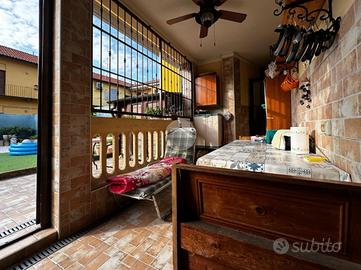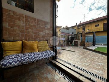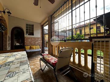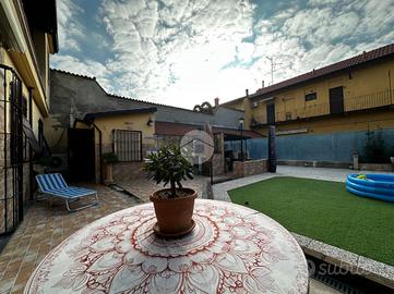 Appartamento in villa con giardino privato - centro storico Nel cuore del centro storico, all'interno di una caratteristica corte lombarda comoda con tutti i servizi, proponiamo in vendita un appartamento di ampia metratura disposto su un unico livello al piano terra, con ingresso indipendente e senza spese condominiali. L'abitazione si apre su un ampio e luminoso soggiorno che conduce a una cucina in muratura dal fascino tradizionale. La zona notte comprende due camere da letto, di cui una matrimoniale, e doppi servizi finestrati: uno con vasca e doccia, l'altro con doccia. Il vero cuore della casa è l'ampio giardino piastrellato, affacciato su un portico coperto ideale per pranzi e momenti di relax all'aperto. A completare la proprietà troviamo un locale ripostiglio, locale caldaia, ripostiglio nel sottoscala, cantina e un comodo box auto. L'immobile si presenta in buone condizioni ed è dotato di tutti i comfort: riscaldamento a pavimento con caldaia a condensazione e pannelli solari, aria condizionata con pompa di calore, infissi interni in legno ed esterni in alluminio con zanzariere, persiane in alluminio, inferriate di sicurezza e sistema antifurto. La doppia esposizione garantisce luminosità e ventilazione naturale, rendendo questa soluzione unica nel suo genere, perfetta per chi desidera indipendenza, spazi generosi e la comodità di vivere in centro.