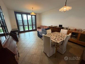 In recente palazzina, proponiamo appartamento di tre locali con giardino, situato in posizione strategica, comoda per scuole, metropolitana e tutti i principali servizi del paese. L'immobile, posto al piano terra, è composto da un accogliente soggiorno, cucinotto, disimpegno, due camere da letto e lavanderia. Dal soggiorno e dalla cameretta si accede a un comodo giardino, ideale per momenti di relax all'aperto, mentre dalla camera matrimoniale si accede a un secondo giardinetto riservato. L'appartamento presenta pavimentazione in ceramica chiara ed è dotato di inferiate e videocitofono. Cantina e box sono compresi nel prezzo. Il complesso residenziale è dotato di pannelli solari per la produzione di energia elettrica, che consentono agli immobili di beneficiare di un sensibile risparmio sui costi dell'elettricità. Soluzione ideale per chi cerca comfort, spazi esterni e comodità.